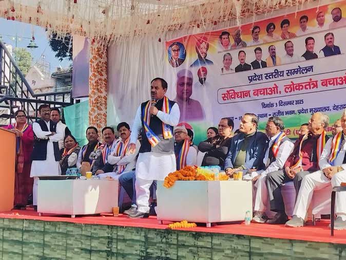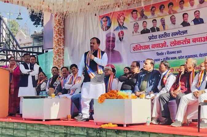 देहरादून।  देहरादून  में उत्तराखंड कांग्रेस की ओर से बुधवार को आयोजित किए गए ‘संविधान बचाओ लोकतंत्र बचाओ’ कार्यक्रम में पार्टी के तमाम वरिष्ठ नेताओं ने बड़ी संख्या में भाग लेकर संविधान और लोकतांत्रिक मूल्यों की रक्षा के संकल्प को दोहराया। राजधानी में आयोजित इस कार्यक्रम में प्रदेश अध्यक्ष गणेश गोदियाल, पूर्व प्रदेश अध्यक्ष करन माहरा, अनुसूचित जाति विभाग के राष्ट्रीय अध्यक्ष राजेंद्र पाल गौतम सहित कई प्रमुख नेता उपस्थित रहे। कार्यक्रम का उद्देश्य देशभर में चल रहे राजनीतिक माहौल के बीच कांग्रेस संगठन को संविधान की मौलिक भावना से जोड़ना और कार्यकर्ताओं को लोकतांत्रिक संस्थाओं की सुरक्षा के लिए सक्रिय भूमिका निभाने का संदेश देना था।