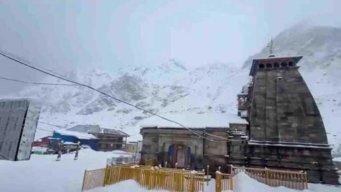 केदारनाथ धाम में बर्फबारी से बढ़ी रौनक, उत्तराखंड में तूफान और ओलावृष्टि का ऑरेंज अलर्ट